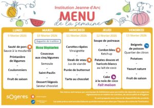 Les menus qui vous sont présentés ici sont conçus par une équipe de diététiciens de notre partenaire SOGERES pour permettre de répondre aux exigences réglementaires en matière de nutrition, de saisonnalité et d’hygiène.